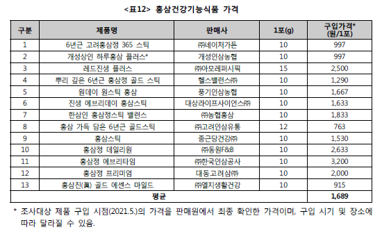 홍삼 건강기능식품에 대한 한국소비자원의 품질 시험 결과인데요