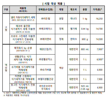 한국소비자원이 식기세턱기 세제의 품질 정보를 공개했네요.