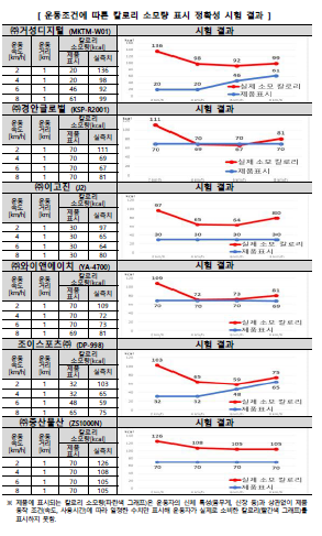 운동량 표시 정확성‧소음, 연간 에너지 비용‧CO2 배출량 등